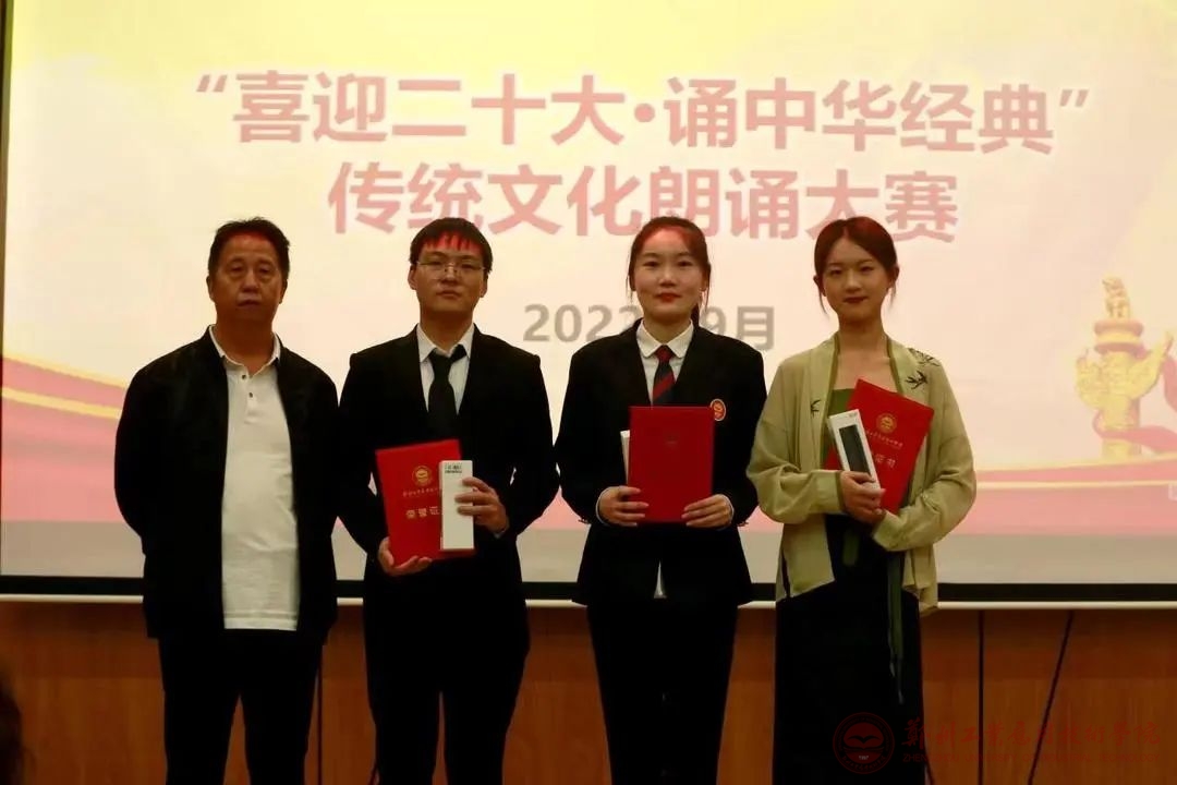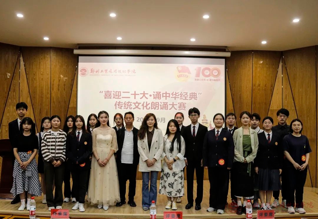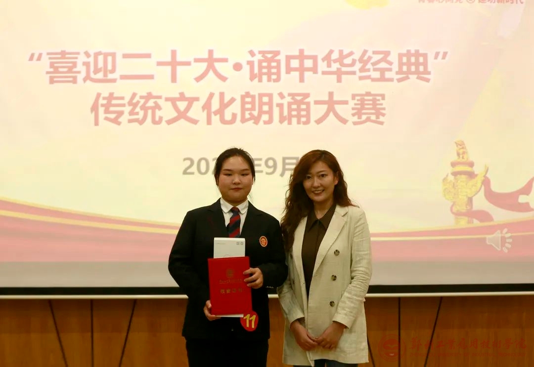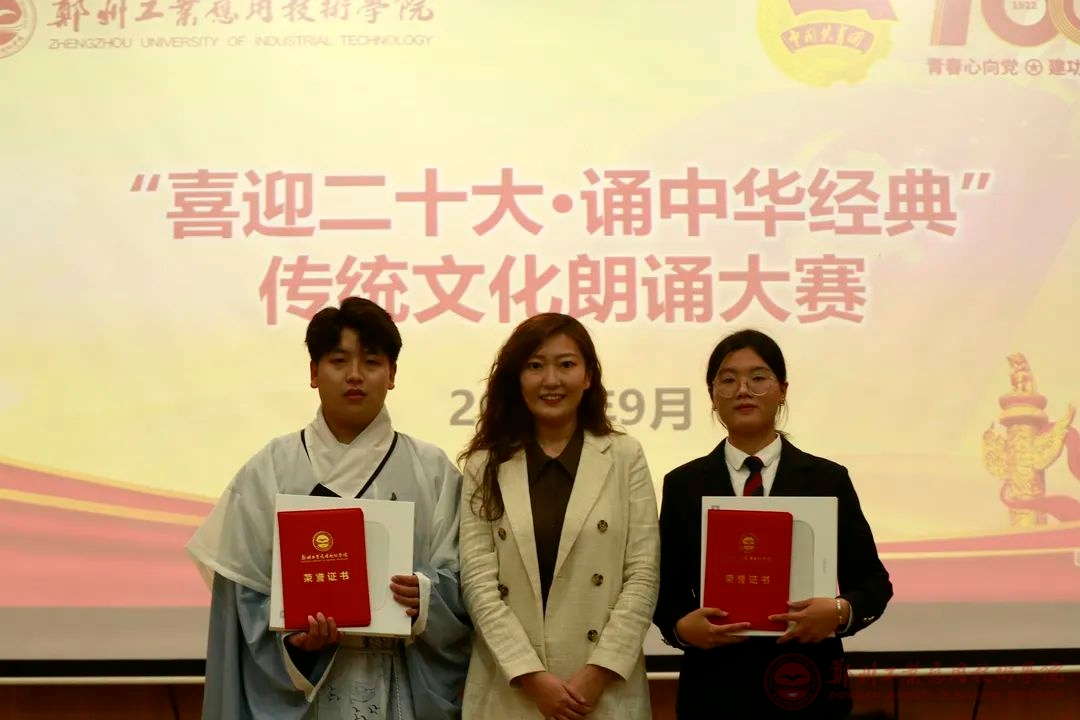 读文化经典,坚定文化自信;诵红色赞歌,致敬伟大时代。为弘扬中华优秀传统文化,增强学生爱党爱国之情,推动校园文化建设,9月26日晚,郑州工业应用技术学院在东校区建工楼梦想厅举办“喜迎二十大·诵中华经典”传统文化朗诵大赛。本次大赛由校国产精品久久久久无码AV组织,音乐学院李佳霖老师、就业创业处赵开阳老师、学生处马晨薇老师担任比赛评委。