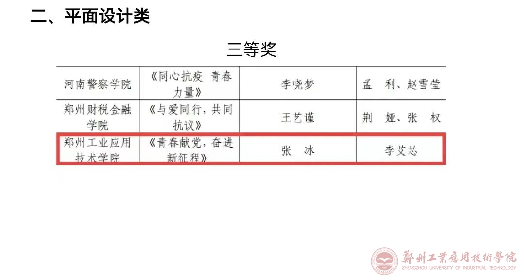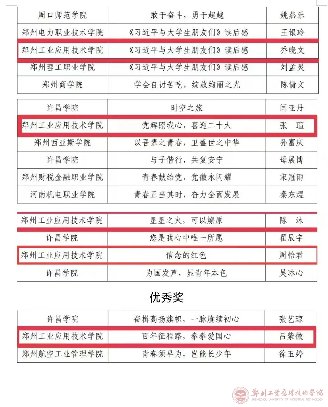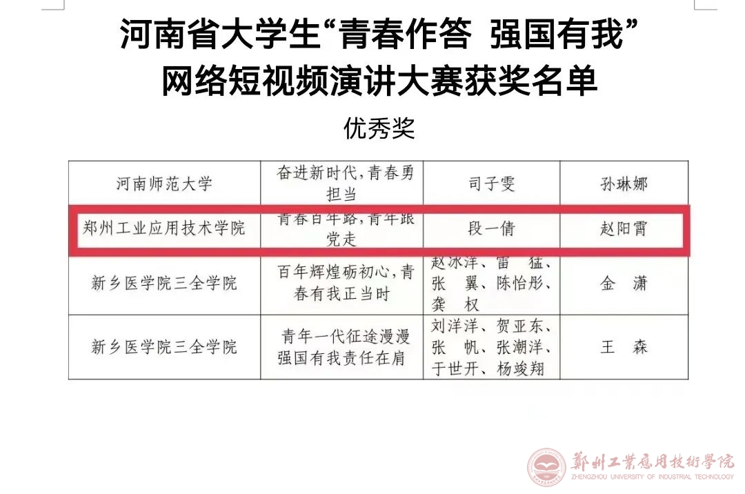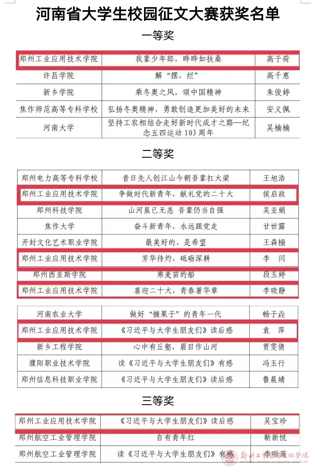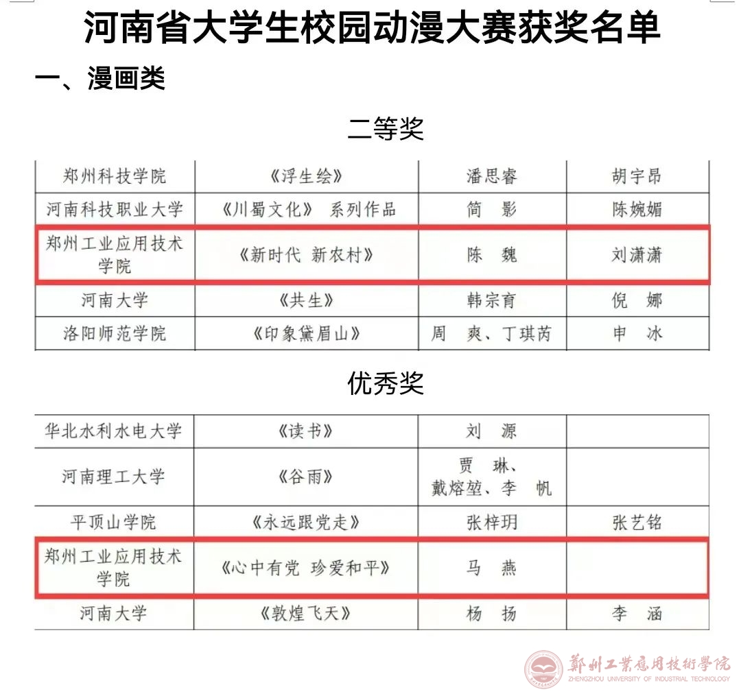 近日,由中共河南省委宣传部、河南省教育厅、共青团河南省委、河南省科学技术厅、河南省学生联合会共同举办的河南省第十八届大学生科技文化艺术节各奖项揭晓,其中我校成绩优异,荣获“优秀组织奖”,在参与的十三项比赛中共获得53项荣誉。其中荣获一等奖6项、二等奖19项、三等奖17项、优秀奖11项。