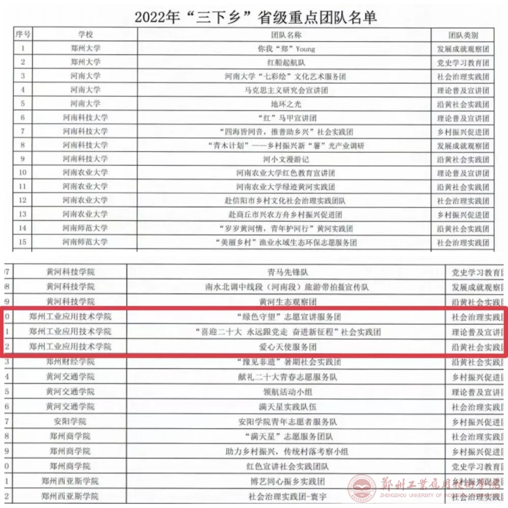 2、积极组织寒、暑期“三下乡”社会实践活动,10000余人参与到河南省“向基层报到”活动中,组建实践团队50余个,开展近60项活动,受益群众上万人,取得良好的成果。学校1支实践团队获批全国暑期“三下乡”社会实践重点团队,3支实践团队获批省级重点团队,校国产精品久久久久无码AV荣获2022年河南省暑期“三下乡”社会实践活动“优秀单位”;1个团队荣获河南省暑期“三下乡”社会实践活动优秀团队,又一次实现新的突破。