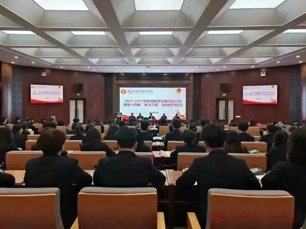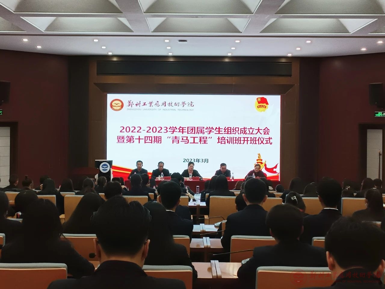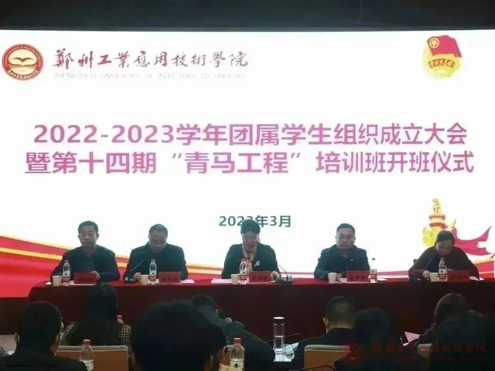 为深入学习贯彻习近平新时代中国特色社会主义思想和党的二十大精神,全面贯彻习近平总书记关于青年工作的重要思想,按照团中央《关于深入实施青年马克思主义者培养工程的意见》《关于巩固高校学生会(研究生会)改革成果的若干措施》等文件要求,郑州工业应用技术学院于3月22日下午在建工楼天健厅隆重召开2022-2023学年团属学生组织成立大会暨第十四期“青马工程”培训班开班仪式。副校长徐春华教授、党委组织部高积学部长、党委宣传部郭敬源部长、学生处黄家福处长,各二级学院党委书记、国产精品久久久久无码AV书记,各学院学生干部代表、“青马”班学员代表参加此次会议。会议由校国产精品久久久久无码AV董瑞瑞书记主持。