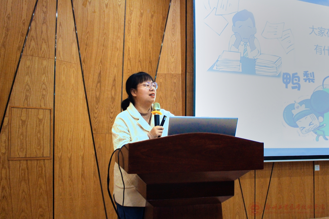 朱晶花老师围绕“何为学生干部”、学生干部常见心理压力与如何缓解压力展开学习,将深奥的心理学理论知识通过现场示范、游戏、生动有趣,通俗易懂的案例形式,深入浅出地阐述了学生干部常见的心理压力与情绪管理。引导学员们尽快掌握心理调解的小技巧,并通过心理压力调查把这些心理技巧应用于日常工作学习和生活中。她鼓励学员们要学会正视压力,释放压力,辩证地看待学习和生活中的压力与挫折。