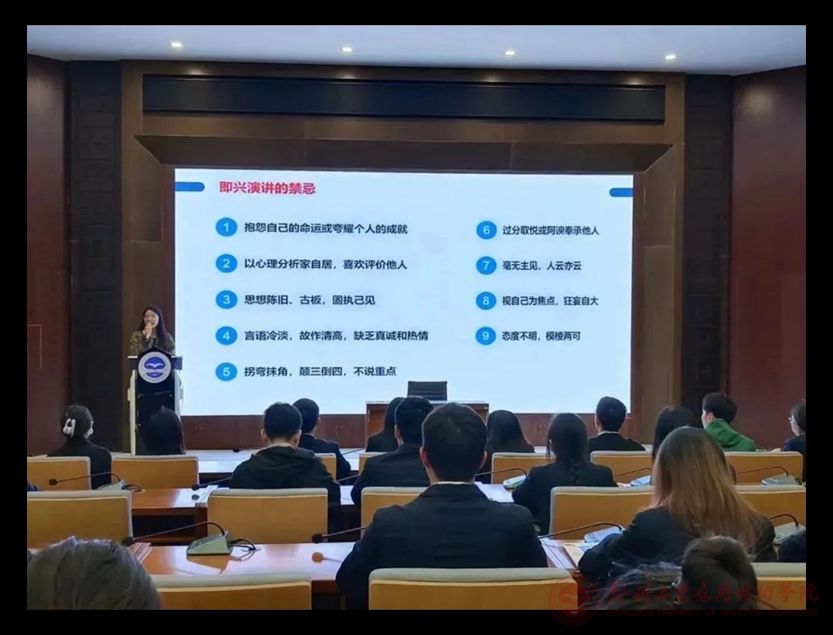 本次课程为同学们日后的演讲、就业以及日常社交都提供了非常宝贵的建议,让更多人了解到日后为人处事、就业任职的基本交流方式,为我校青年学生日后的生活提供了极为现实的经验。