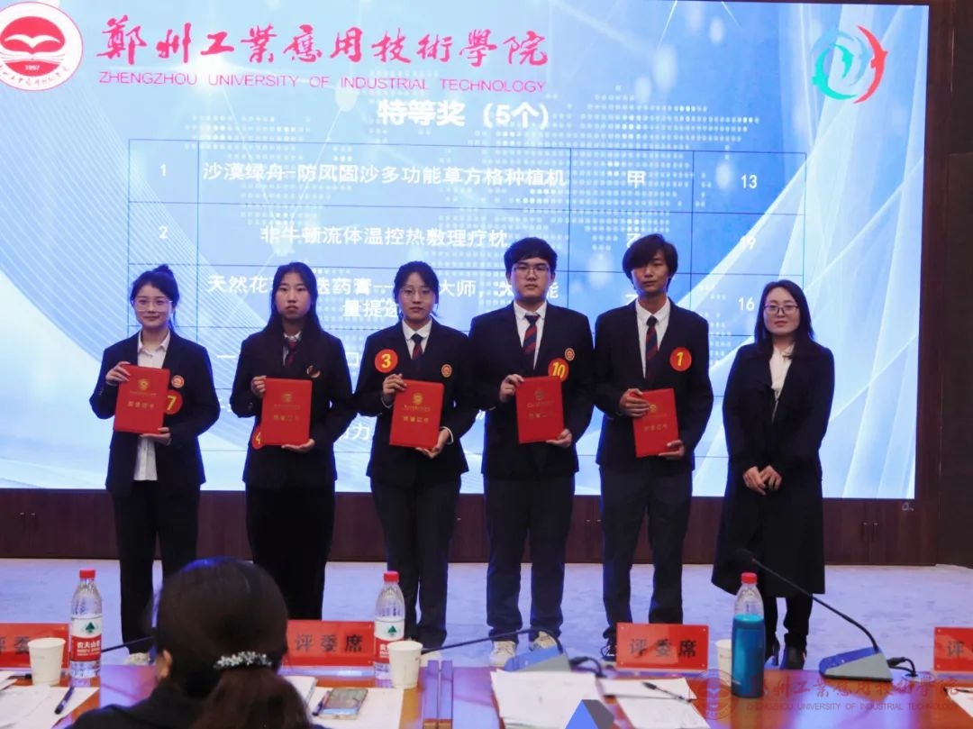 最终,5项作品荣获本次大赛特等奖,10项作品荣获一等奖,20项作品荣获二等奖,35项作品荣获三等奖。艺术设计学院荣获本次大赛“挑战杯”,建筑工程学院、医学院、药学与化学工程学院、商学院、管理学院荣获本次大赛“优胜杯”,艺术设计学院、建筑工程学院、医学院、药学与化学工程学院荣获“优秀组织奖”。至此,郑州工业应用技术学院第七届“挑战杯”大学生课外学术科技作品竞赛终审决赛圆满结束。