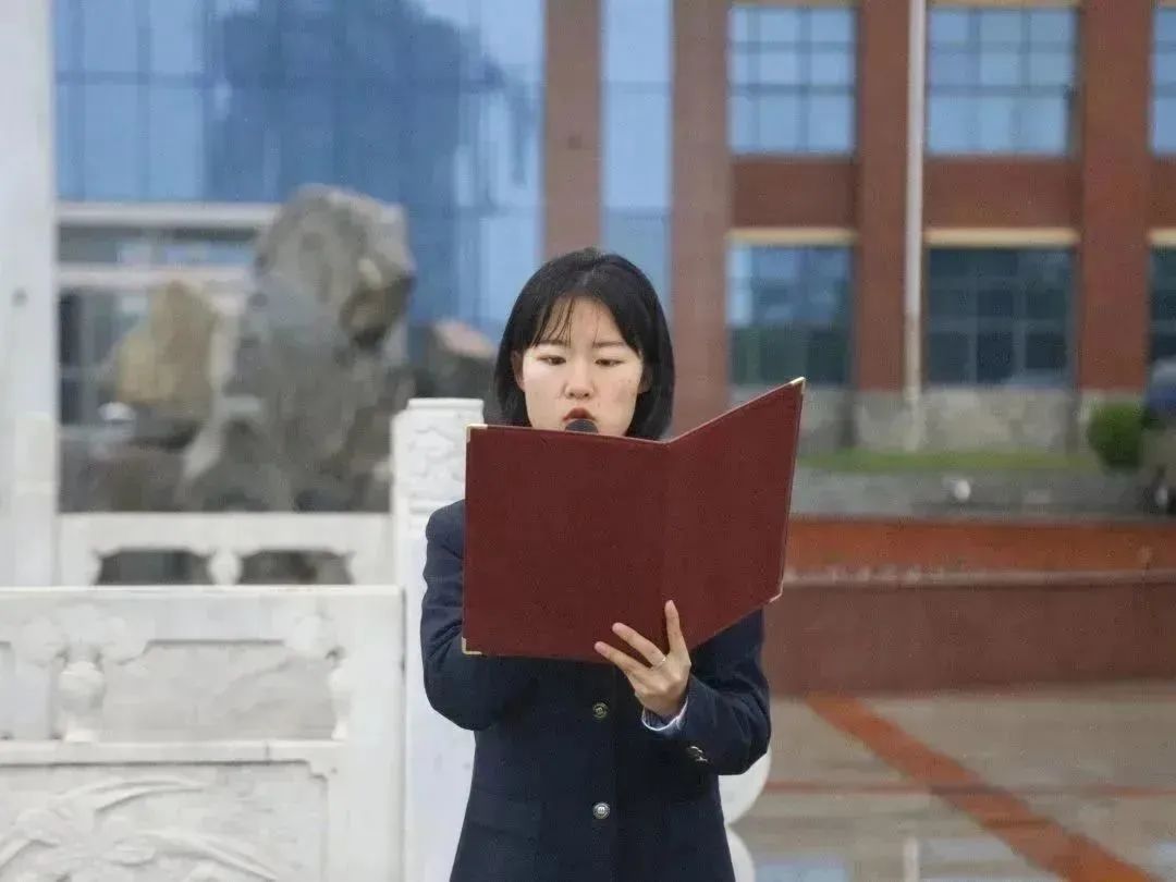 国旗护卫队杨若兰、青年志愿者联合会彭毅毅作为学生代表在国旗下宣讲,号召青年学子传承五四精神,在中国共产党的领导下,不断奉献祖国、奉献人民;在个人价值与国家民族发展紧密相融中砥砺奋进,以实际行动凝聚红色力量;在努力学习专业知识中牢记使命与担当,用智慧和汗水为祖国繁荣昌盛,中华民族伟大复兴注入强大的创造动力。