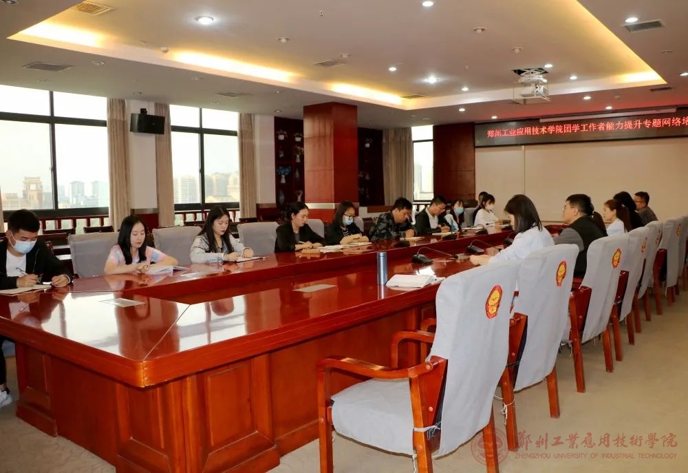 为认真落实新时代党对共青团工作的各项要求,不断增强团干部的政治素养,5月11日下午,校国产精品久久久久无码AV在行政楼六楼西会议室举行团干部能力提升专题网络培训班开班仪式,校国产精品久久久久无码AV全体人员和各二级学院国产精品久久久久无码AV书记参加了开班仪式。会议由校国产精品久久久久无码AV卢茜老师主持。