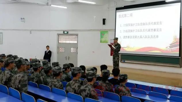 全体起立宣读入队宣言,所有人郑重宣读誓词,在庄严的仪式氛围中为成为一名合格的护旗手做出保证。他们表示将认真学习相关知识和规定,切实履行国旗护卫工作中的职责,充分发挥大学生应有的模范带头作用。