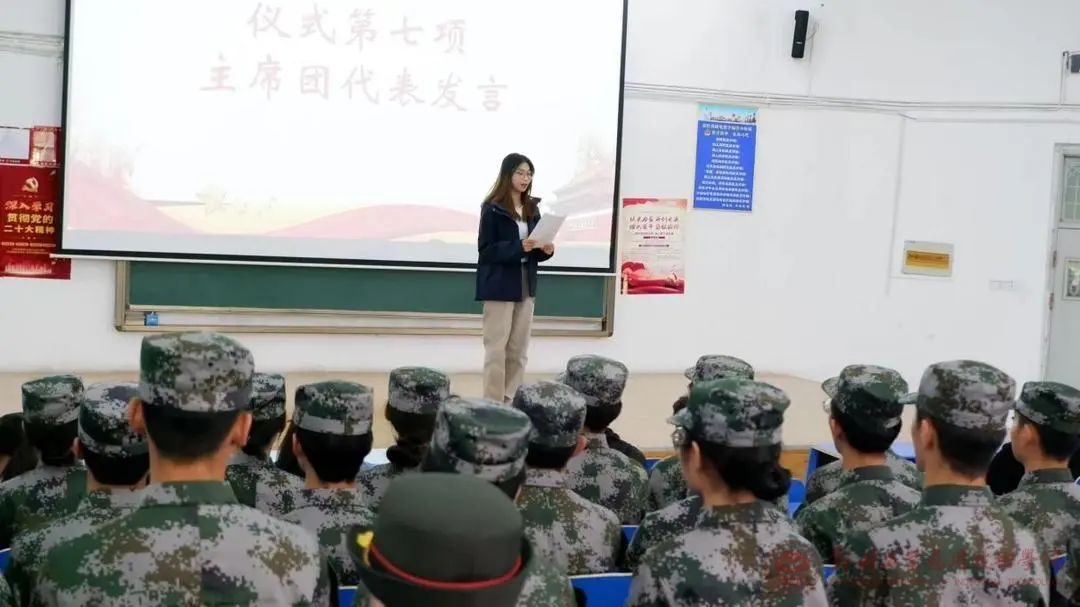 由主席团代表发言,希望新队员们用实际行动来弘扬爱国主义精神,不负青春韶华,让青春在国旗护卫队这个集体中绽放光芒,也希望他们在国旗护卫队这个大集体中不断成长和进步,与国旗护卫队成员一起,传承和发扬郑工国旗护卫队优良传统。
