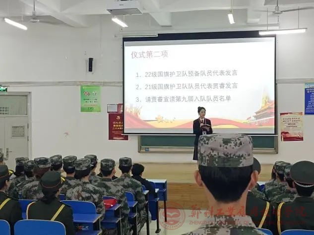 在22级郑工国旗护卫队的入队仪式上,我们见证了一群优秀的青年走向了新的舞台。他们将肩负着守护国旗、传承爱国主义精神的使命,在校园文化建设中发挥重要作用。