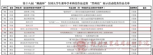 此外,在同期举行的第十八届“挑战杯”全国“黑科技”专项赛中,学校参赛作品《苦药克星——促进中医药发展的口腔喷剂》获得“卫星”级奖项。