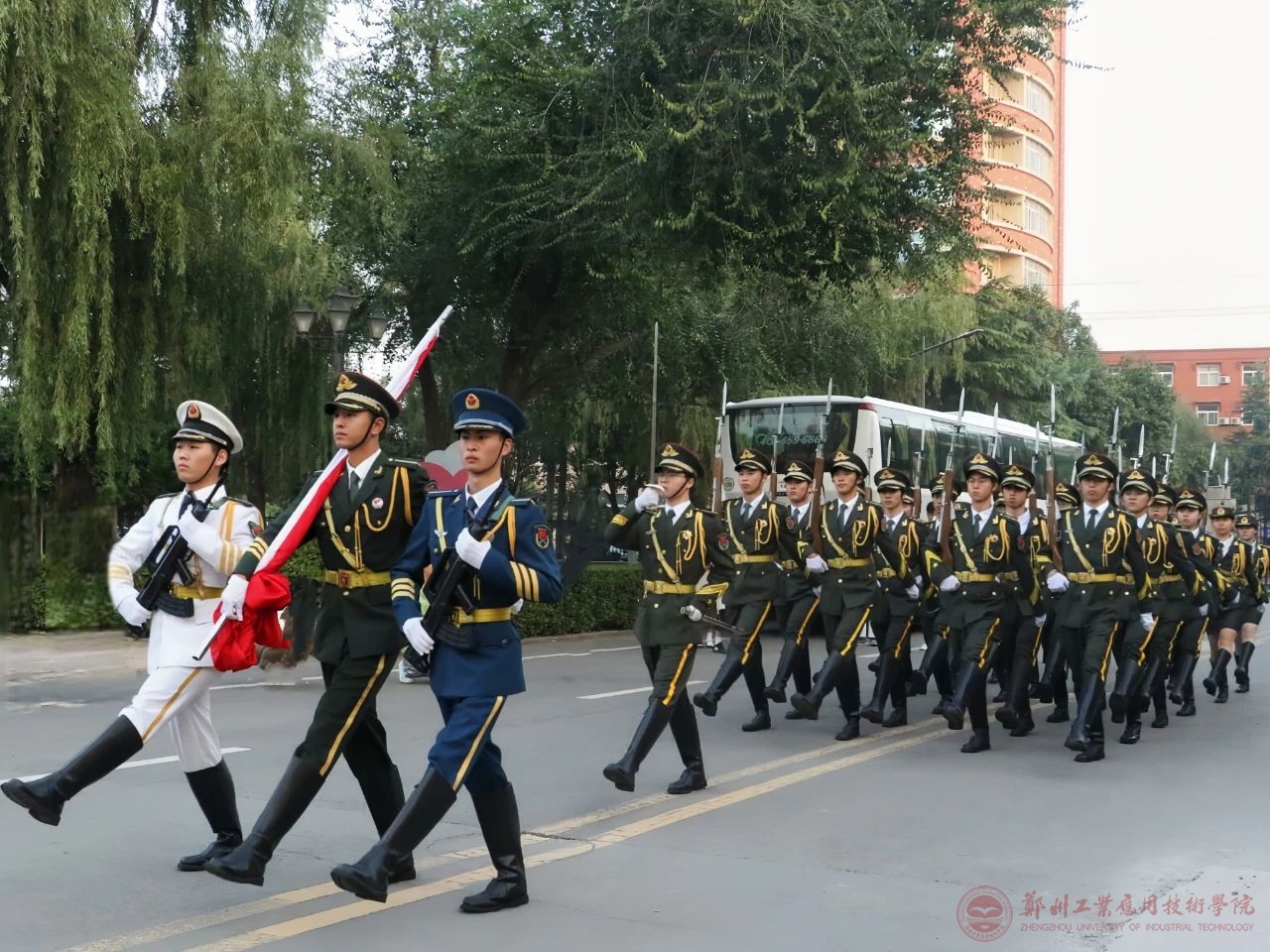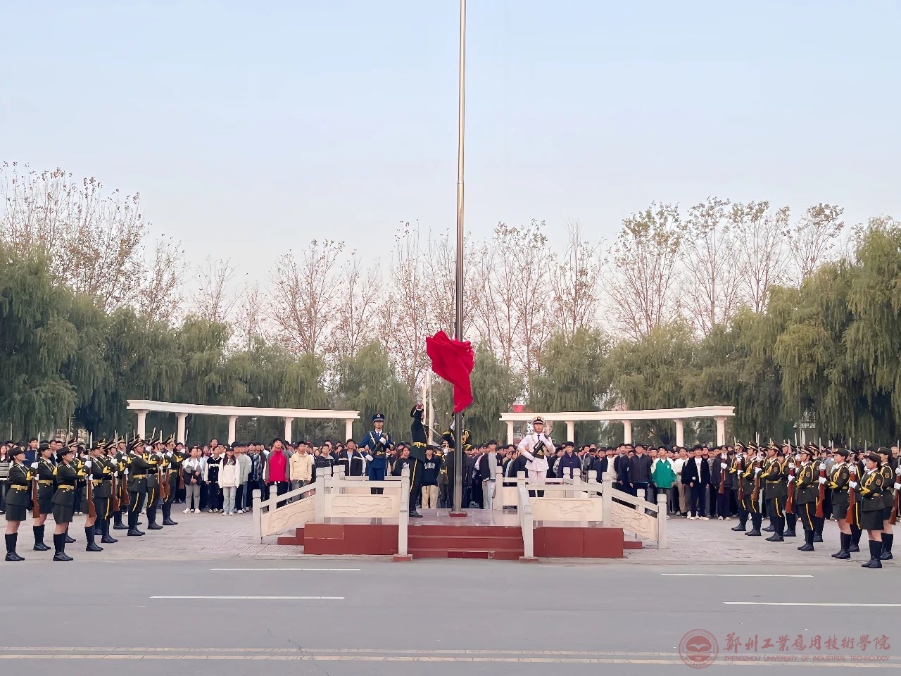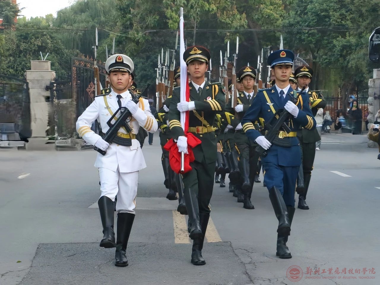 金秋送爽,万里山河披锦绣;丹桂飘香,秋日郑工迎晨旭,学校国旗护卫队迈着整齐划一、铿锵有力的步伐,护卫着鲜艳的五星红旗走向升旗台,伴随着雄壮的《义勇军进行曲》,五星红旗冉冉升起,随风飘扬,全体师生庄严肃立,向国旗行注目礼,升旗仪式肃穆隆重。