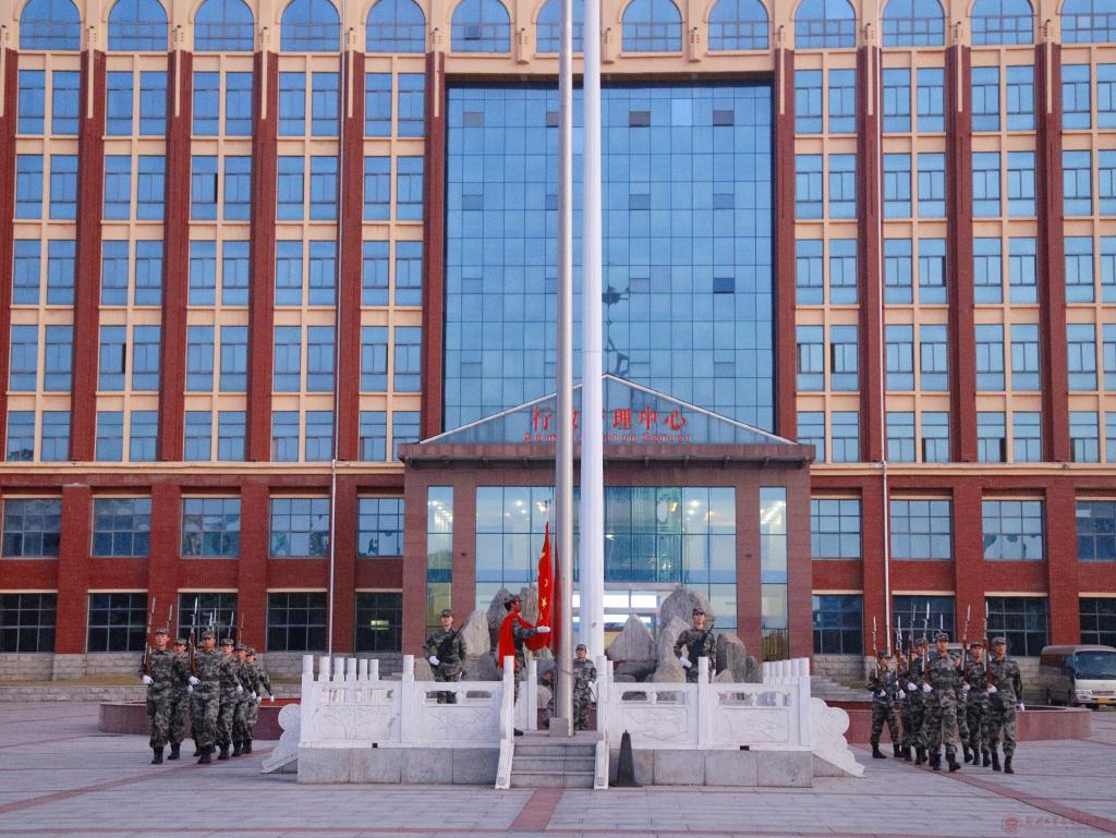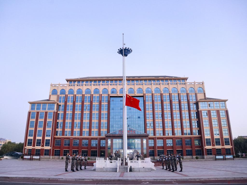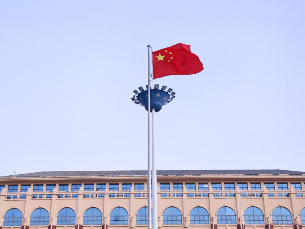 清晨,风中略带寒意,但升旗广场早已站满了师生。升旗仪式开始,学校国旗护卫队迈着整齐划一、铿锵有力的步伐护卫着鲜艳的五星红旗缓缓走向升旗台,伴随着雄壮的《义勇军进行曲》,五星红旗冉冉升起,随风飘扬,全体师生庄严肃立,向国旗行注目礼,升旗仪式肃穆隆重。