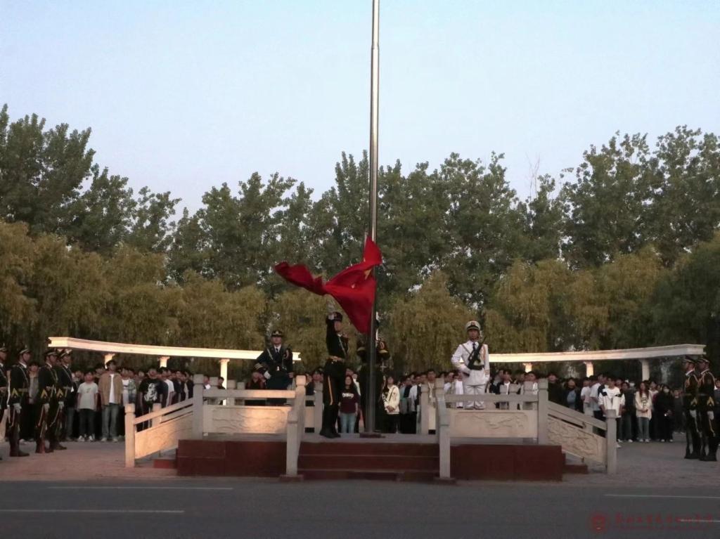朝阳初升映国旗,庄严仪式动人心。在国旗广场上,雄壮激昂的国旗献词讴歌着升旗仪式的神圣,国旗护卫队在献词中迈着铿锵有力、整齐划一的步伐走向升旗台。随着国歌的响起,国旗手缓缓拉动绳索,五星红旗冉冉升起,全体师生向国旗行注目礼并齐唱国歌。