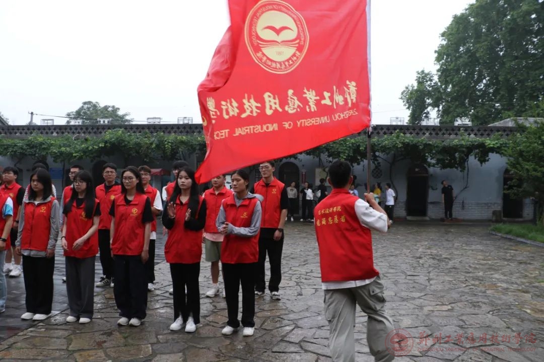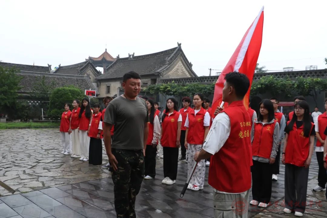 开营仪式上,成员们肃穆而立,聆听着场馆的历史,感受着老一辈革命家艰苦奋斗的革命精神;成员代表接过校旗,庄重地举向空中,标志着本次社会实践活动正式开始;全体成员面向团旗重温入团誓词,传承红色基因、发扬斗争精神,勇于担当,善于作为,为中华民族伟大复兴贡献力量。