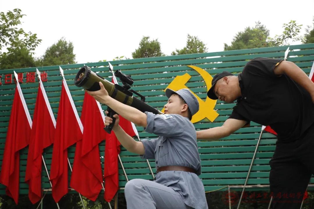 最后,所有成员走进八路军实践基地,共同上了一堂“有实践的思政课”,大家身穿军装,精神抖擞,切身实地体验革命场景。通过感受迫击炮、火箭筒的发射过程,学习红缨枪的使用,在亲自参与、亲身体验中,了解革命故事,学习党的历史。在嘹亮的红歌中,本次社会实践活动圆满结束。