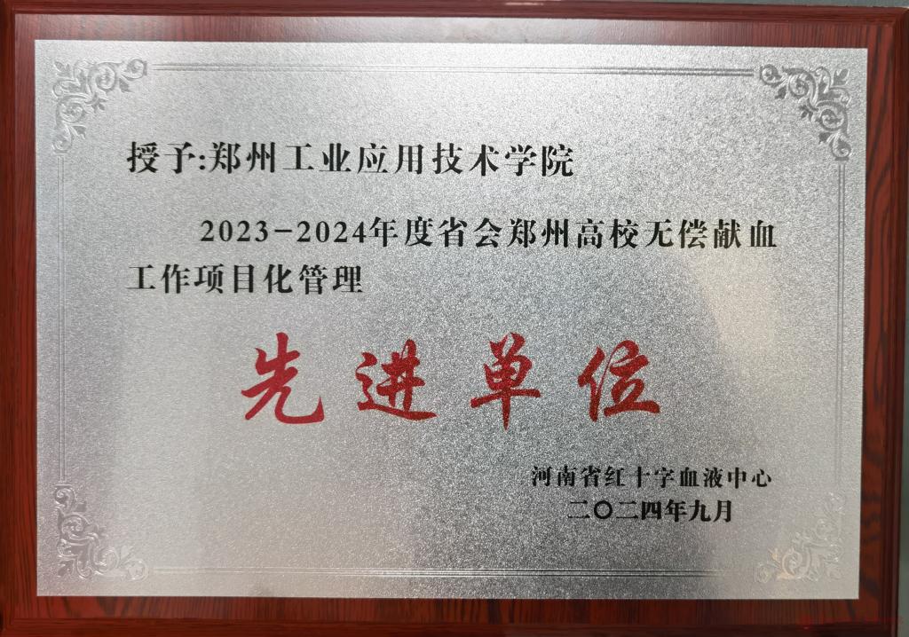 近日,河南省卫生健康委、河南省教育厅、共青团河南省委、河南省红十字血液中心联合召开2024年度省会郑州高校无偿献血工作会。会上,我校被授予“2023-2024年度省会郑州高校无偿献血工作项目化管理先进单位”荣誉称号。