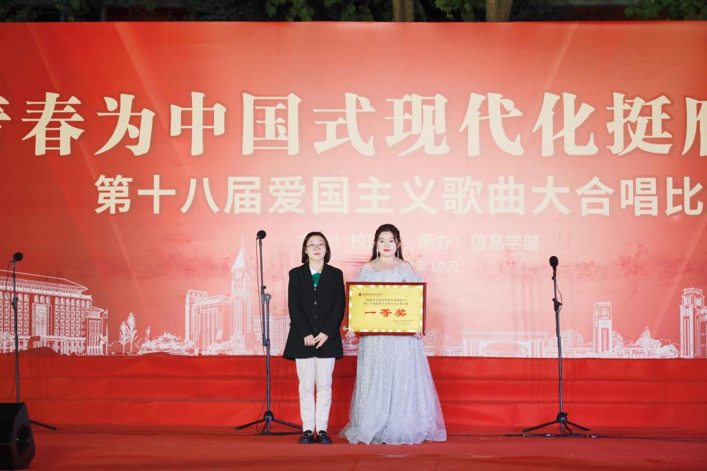 在热烈的掌声中,爱国主义大合唱比赛圆满结束。在这个充满激情与活力的日子里,郑工学院的学子们用歌声传递着对祖国的热爱,用行动诠释着新时代青年的担当。相信在爱国主义精神的激励下,他们必将在未来的人生道路上绽放出更加绚烂的光彩,为强国建设、民族复兴挺膺担当,为学校教育事业高质量发展凝聚奋进力量。