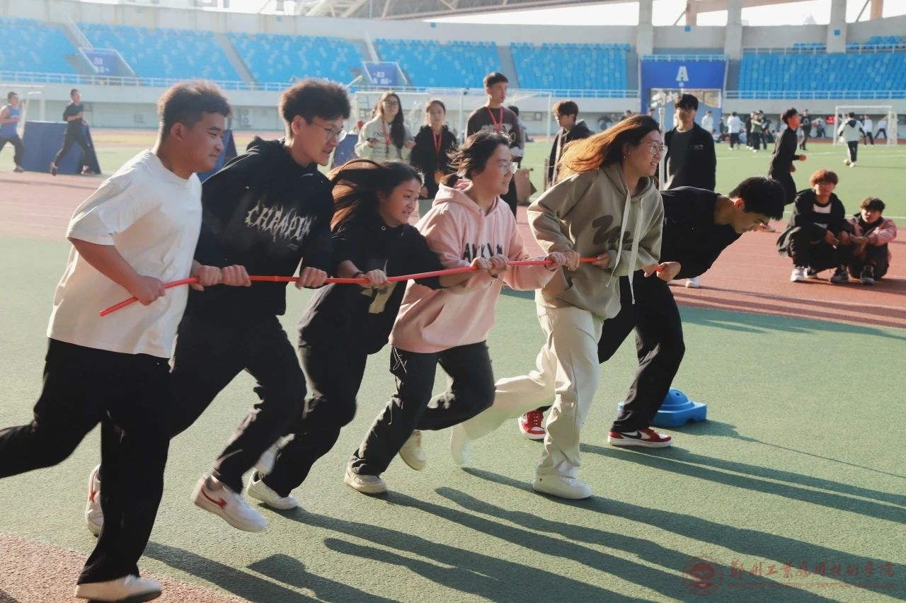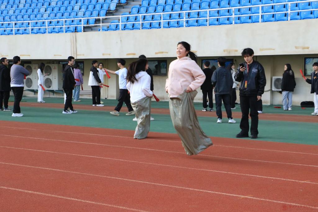 比赛中,各学院被分成若干小组,开启一系列充满挑战与趣味的素质拓展项目。“袋鼠跳”“十人九足”“绕桩比赛”,这不仅考验了大家的身体协调性,更需要他们之间的默契配合与相互信任。赛场上,同学们有的步伐轻盈,快速前进;有的则略显紧张,但在队友的鼓励下也努力坚持,现场欢声笑语不断,加油助威声此起彼伏。